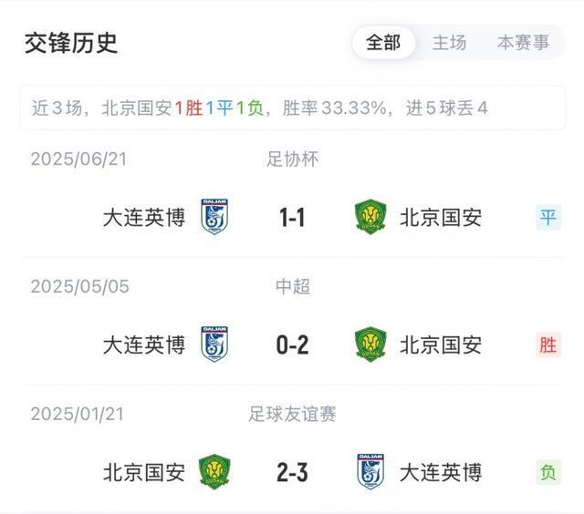 国安此前遭遇中超三连败,48分排名积分榜第四,落后榜首6分;英博33分排名第8。
