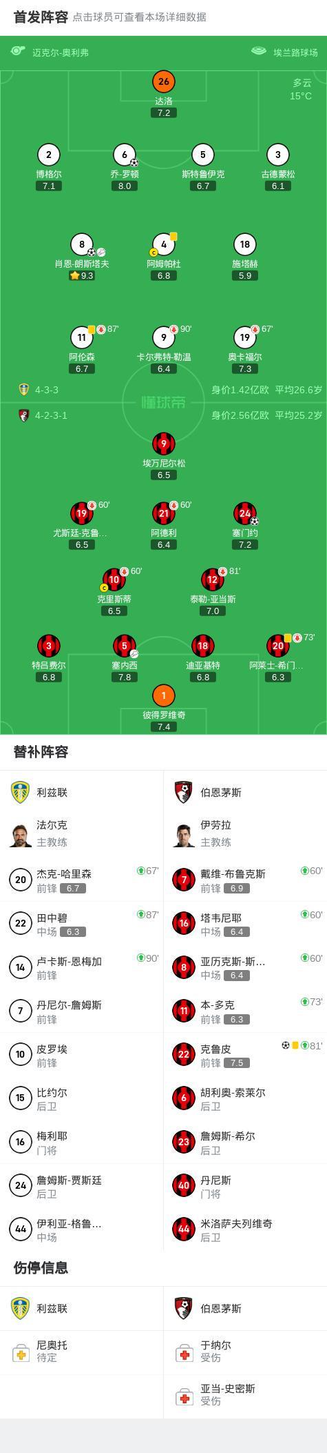 利兹联22伯恩茅斯,塞门约、朗斯塔夫世界波,克鲁皮绝平
