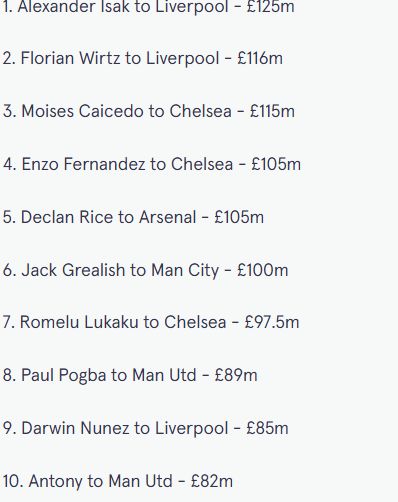 此前的英国转会费纪录由恩佐·费尔南德斯保持,他在帮助阿根廷夺得世界杯后以1.05亿英镑加盟切尔西,但仅随队获得欧协联和世俱杯,未能让蓝军成为冠军争夺者。