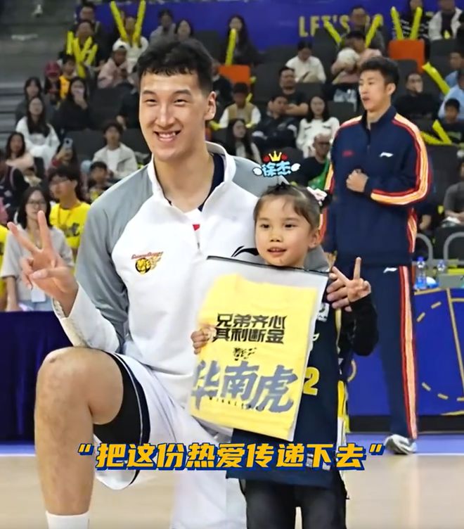 接下来,广东队球员在上演的对抗表演赛中,意外出现了一段充满童趣的插曲。一位5岁的小球迷受邀登场,只见她脚上一双标志性的——人字拖,俨然是“广东特色”的生动写照。面对场上5名广东队球员组成的“防守阵容”,这位小女孩毫不怯场,在球员张昊的默契配合与托举下,成功完成一记扣篮。